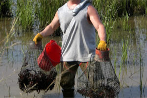 RS 14:67.5 67.5. Theft of crawfish; penalty A. No person shall knowingly, willfully and intentionally fish or take any commercial crawfish from any crawfish farm, except with the consent of the owner thereof. B.(1) Whoever commits the crime of theft of crawfish when the misappropriation or taking amounts to a value of five hundred dollars or more shall be imprisoned, with or without hard labor, for not more than ten years, or may be fined not more than three thousand dollars, or both. (2) When the misappropriation or taking amounts to a value of three hundred dollars or more, but less than a value of five hundred dollars, the offender shall be imprisoned, with or without hard labor, for not more than two years, or may be fined not more than two thousand dollars, or both. (3) When the misappropriation or taking amounts to less than a value of three hundred dollars, the offender shall be imprisoned for not more than six months, or may be fined not more than five hundred dollars, or both. If the offender in such cases has been convicted of theft of crawfish one or more times previously, upon any subsequent conviction he shall be imprisoned, with or without hard labor, for not more than two years, or may be fined not more than two thousand dollars, or both. Added by Acts 1977, No. 349, 1; Acts 2001, No. 591, 1.